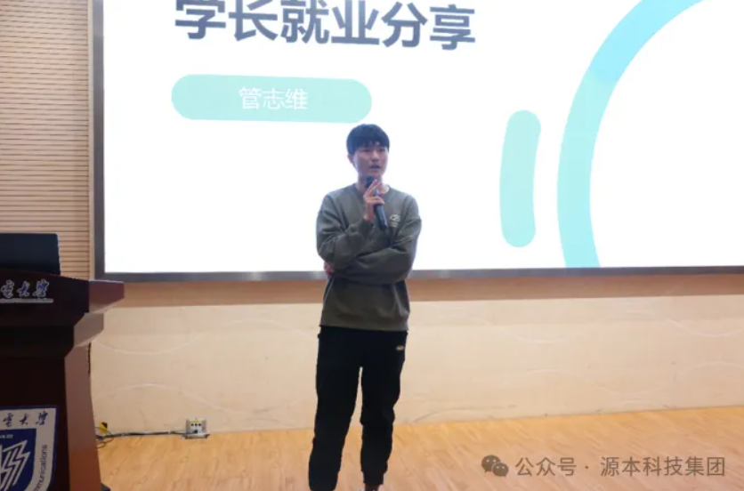 最后,Ebpay科技就业班优秀学员、21级通信工程专业学生管志维分享了他本次秋招的求职感悟。他结合自身经历以及周围求职者的实例讲述了写简历和面试的技巧。他分享了自己从准备考研,到最终选择在Ebpay科技集团学习技术就业的心路历程,鼓励同学们保持信心,持续参加实习,积累项目经验。